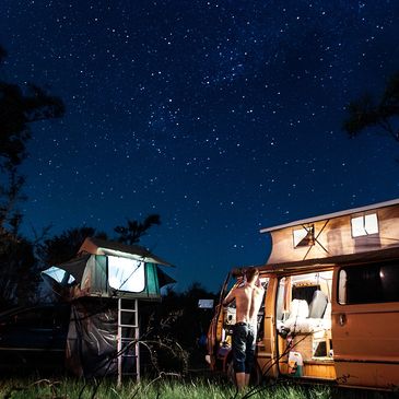 Portable batteries which you can charge with a solar panel. You can use them to charge fridges, lights, phones and many more equipment you might need camping. See video below making milkshakes using an Ecoflow battery